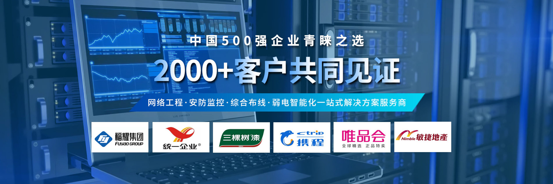 12年耕耘,實力深厚:擁有電子與智能化網絡工程級承包二級資質及安防監控資質; 具備大、中型網絡工程、安防監控、綜合布線、弱電工程等項目的設計、實施及管理經驗,能夠為客戶提供完整的網絡機房工程解決方案以及弱電維保服務。